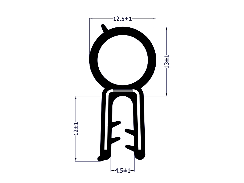 Caratteristiche del profilo: profilo in PVC con bulbo in PVC NBR compatto bulbo superiore – battuta baule Inserto metallico in lamierino tranciato Disponibile in confezioni da 50 metri