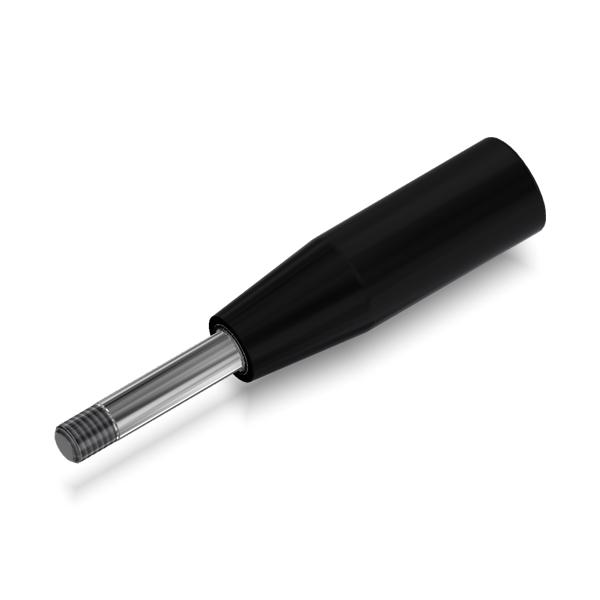 Maniglia con Asta Materiale Corpo:Tecnopolimero rinforzato di colore Nero, resistente a solventi, oli, grassi ed altri agenti chimici Parte Metallica e/o Fissaggio:Asta in acciaio zincato