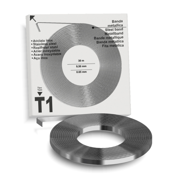 Nastro BAND-FLEX Materiale:Nastro in acciaio inox AISI 301 Materiale altri componenti metallici:1/4? – 3/8? ? 1/2? ? 5/8? ? 3/4? Box Graffe