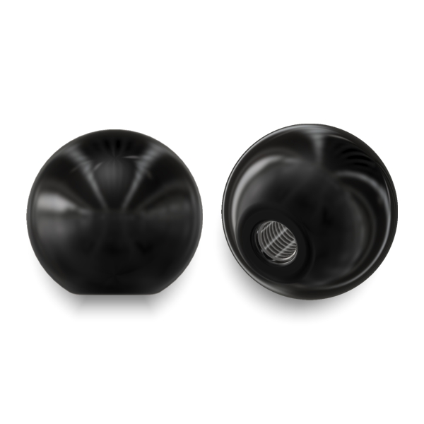 Pomolo a Sfera con Foro Filettato Materiale Corpo:Duroplasto rinforzato di colore Nero, resistente a solventi, oli, grassi ed altri agenti chimici Parte Metallica e/o Fissaggio:Foro cieco filettato
