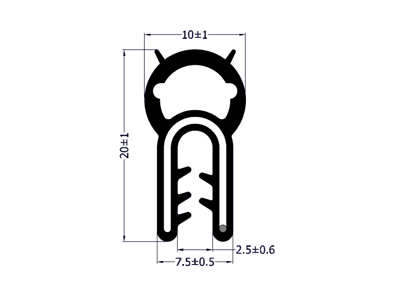 profilo in PVC con bulbo in PVC NBR compatto